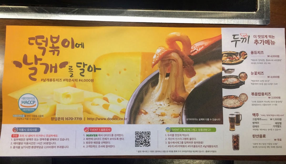 From a reviewer’s perspective, the menu at Dookki Topokki offers a fun and customizable dining experience that centers around Korean street food flavors, with 떡복이 clearly being the star of the selection thanks to its chewy rice cakes and rich, spicy-sweet sauce options that diners can adjust to their taste. The addition of 치즈퐁듀 elevates the meal, adding a creamy, savory element that pairs perfectly with the spicy components and a variety of fried sides available on the buffet-style spread. Beyond these standout items, the menu includes noodles, fish cakes, vegetables, and various toppings that allow guests to create their own combinations, making the meal interactive and satisfying. Overall, the menu stands out for its variety, value, and the enjoyable balance between bold Korean flavors and comforting cheesy indulgence, making it a memorable option for casual dining.